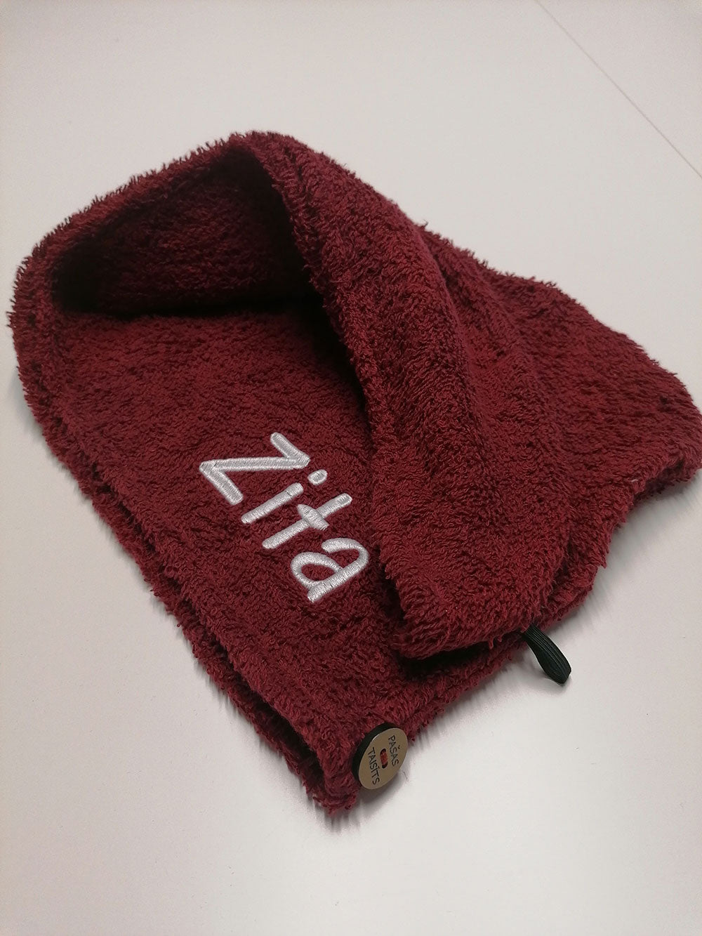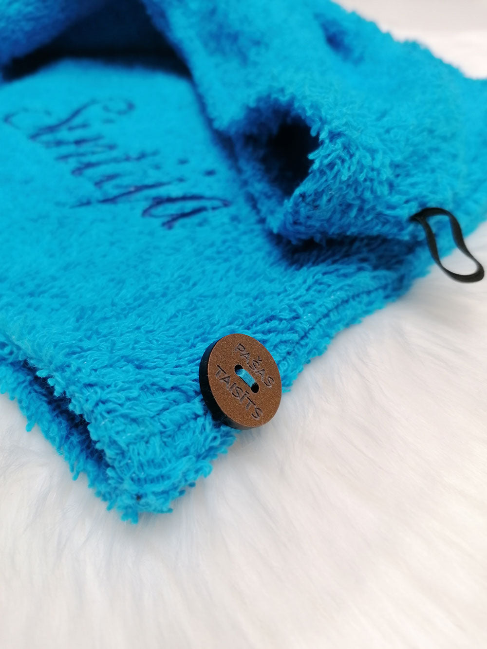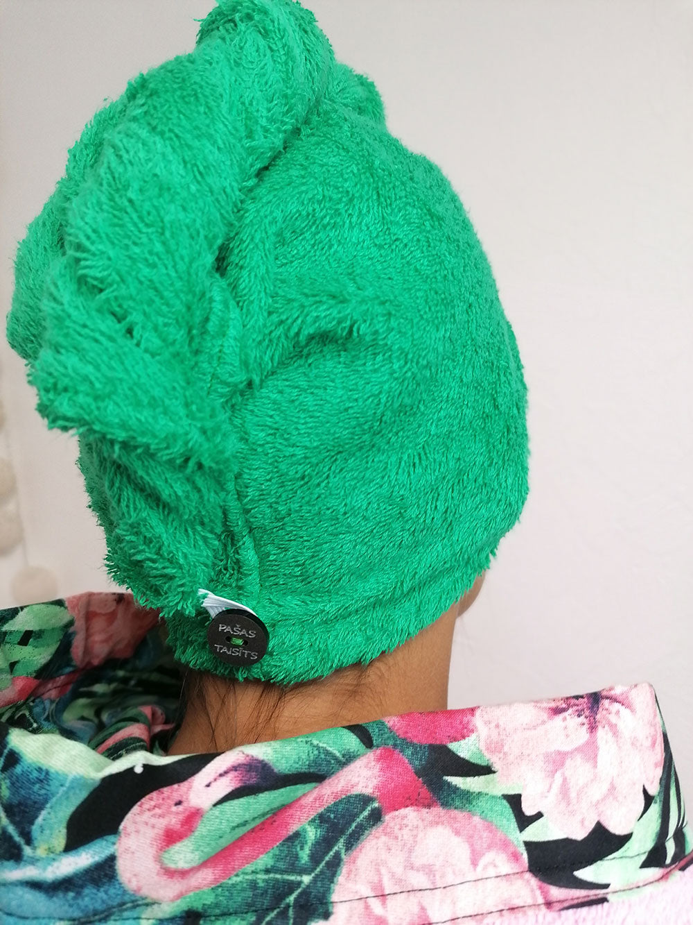 100% frotē auduma matu dvielis. Lieliski uzsūc mitrumu un vairs nav jāraizējas, ka satītais dvielis kritīs nost. Šis ir ērts un ļoti praktisks variants, nekritīs nost un neplēsīs matus!