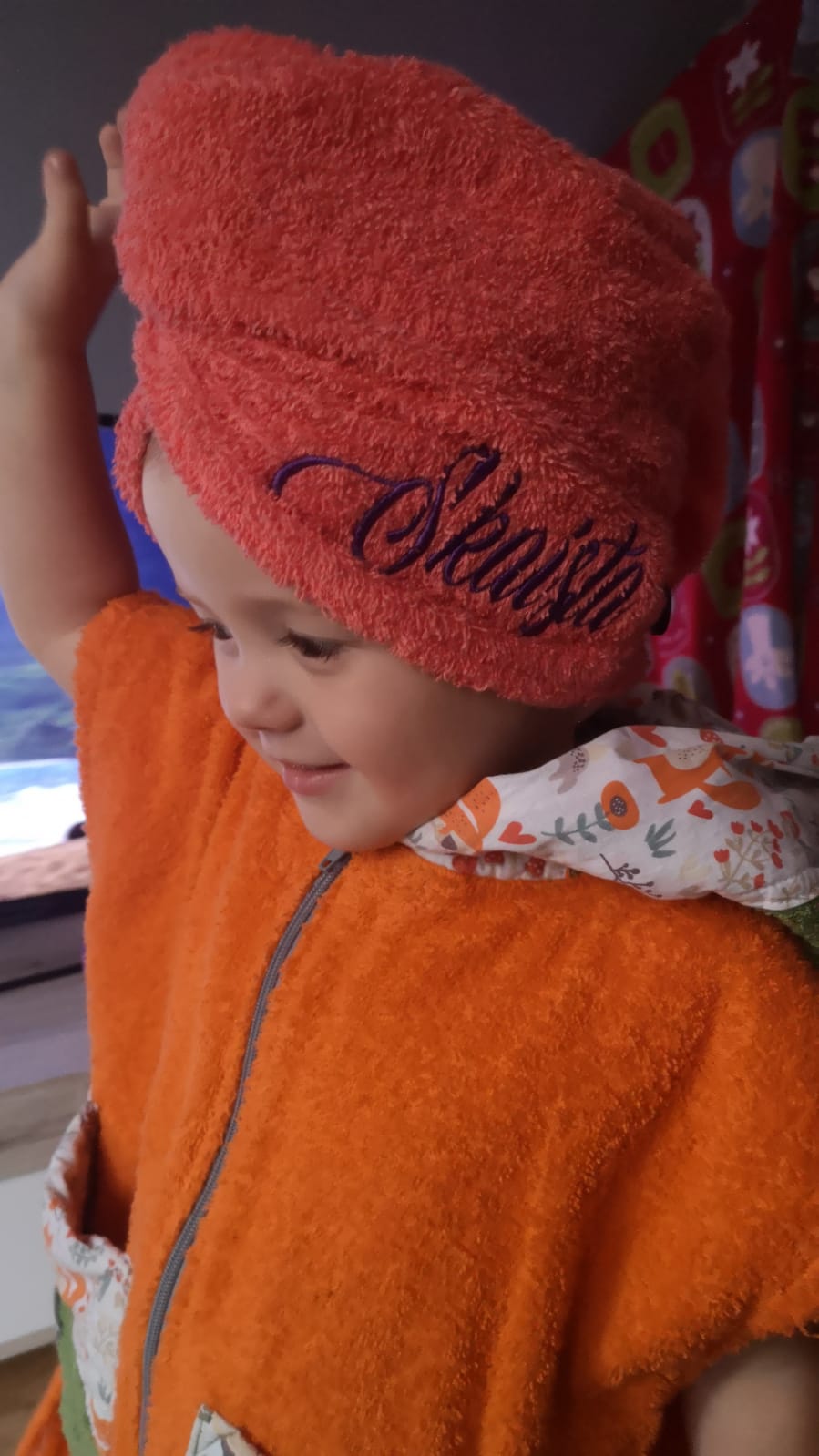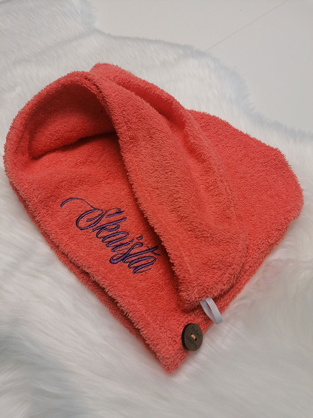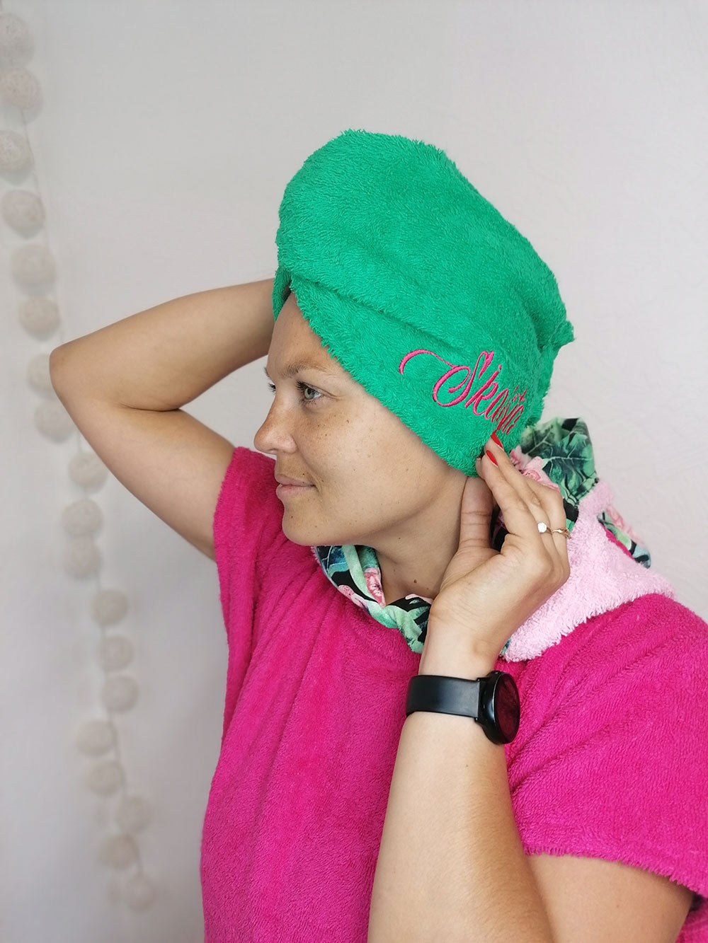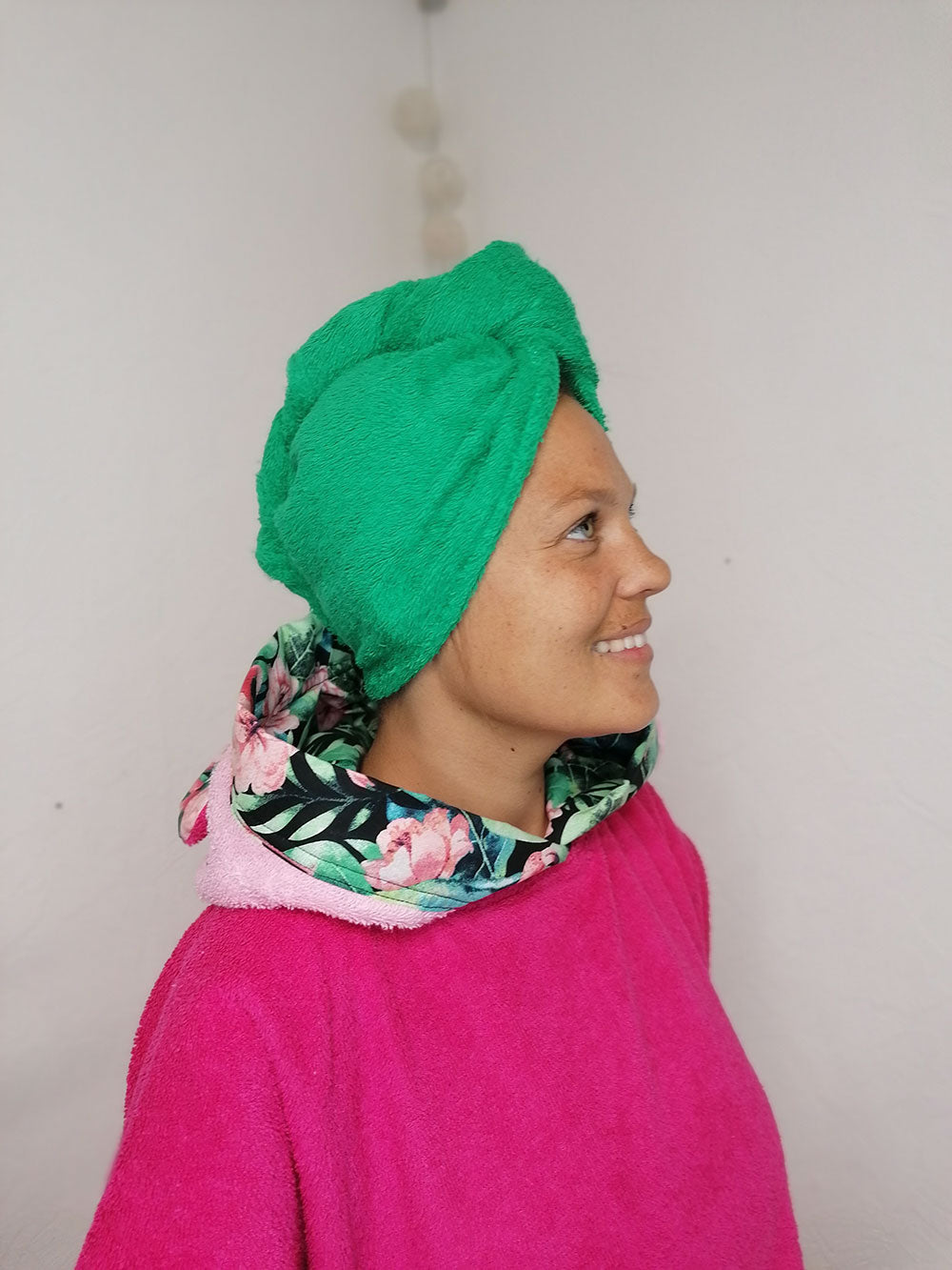 100% frotē auduma matu dvielis. Lieliski uzsūc mitrumu un vairs nav jāraizējas, ka satītais dvielis kritīs nost. Šis ir ērts un ļoti praktisks variants, nekritīs nost un neplēsīs matus!