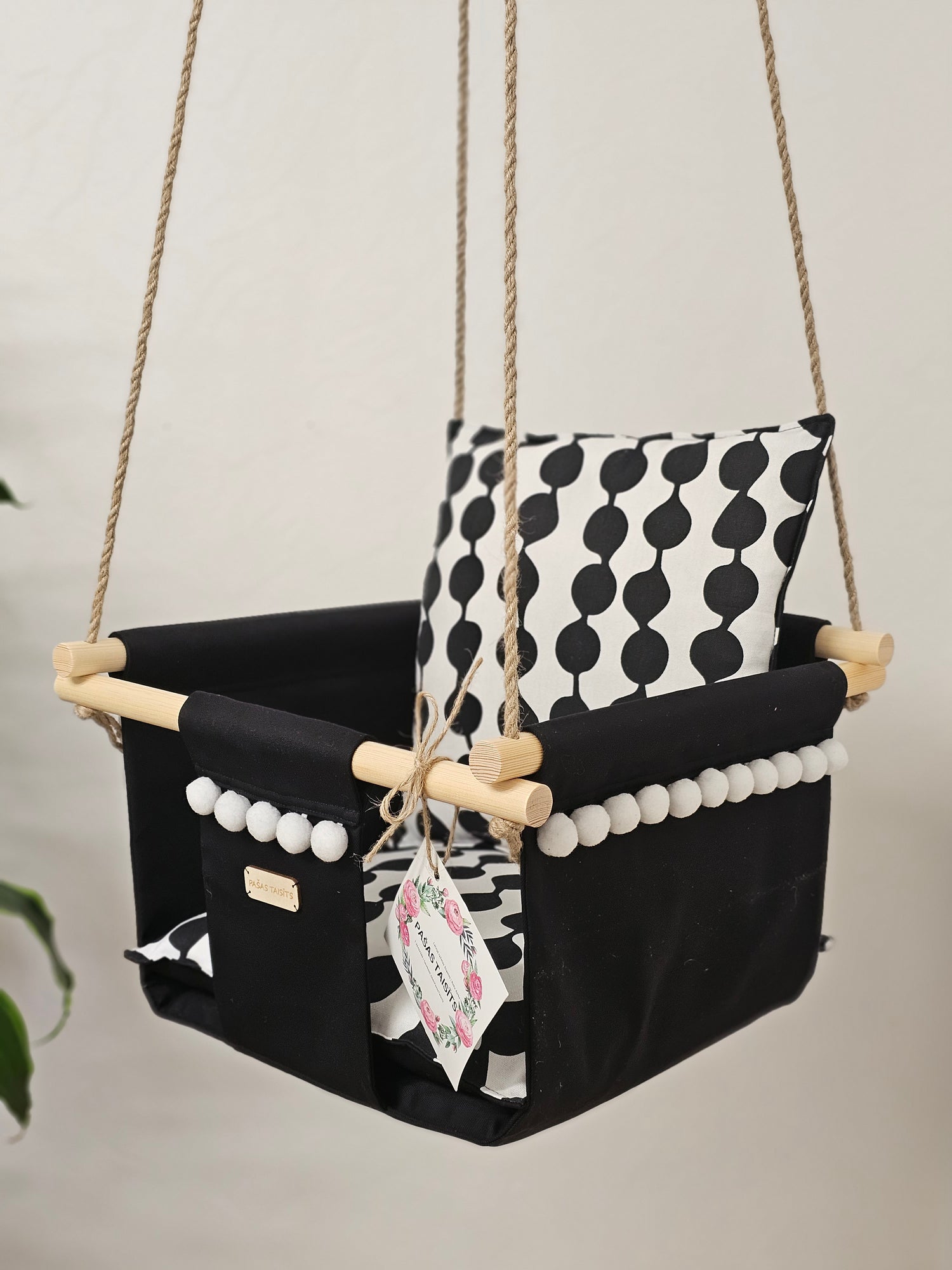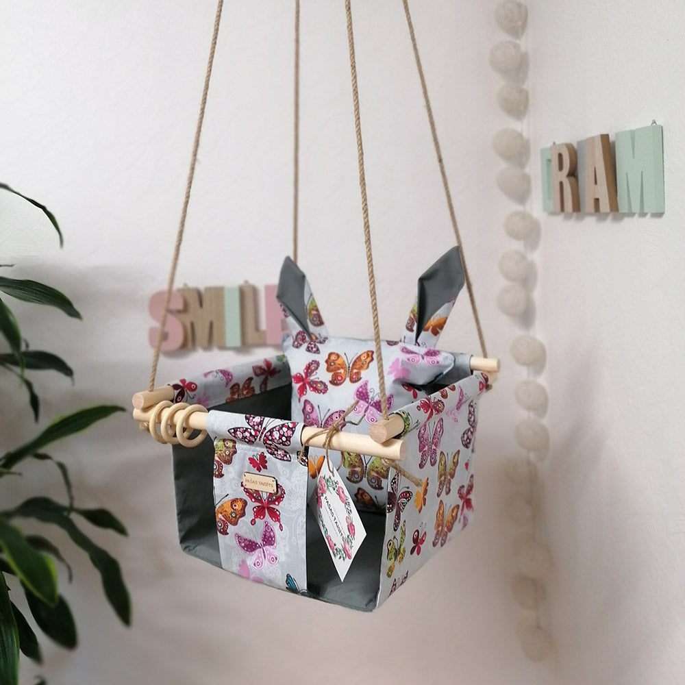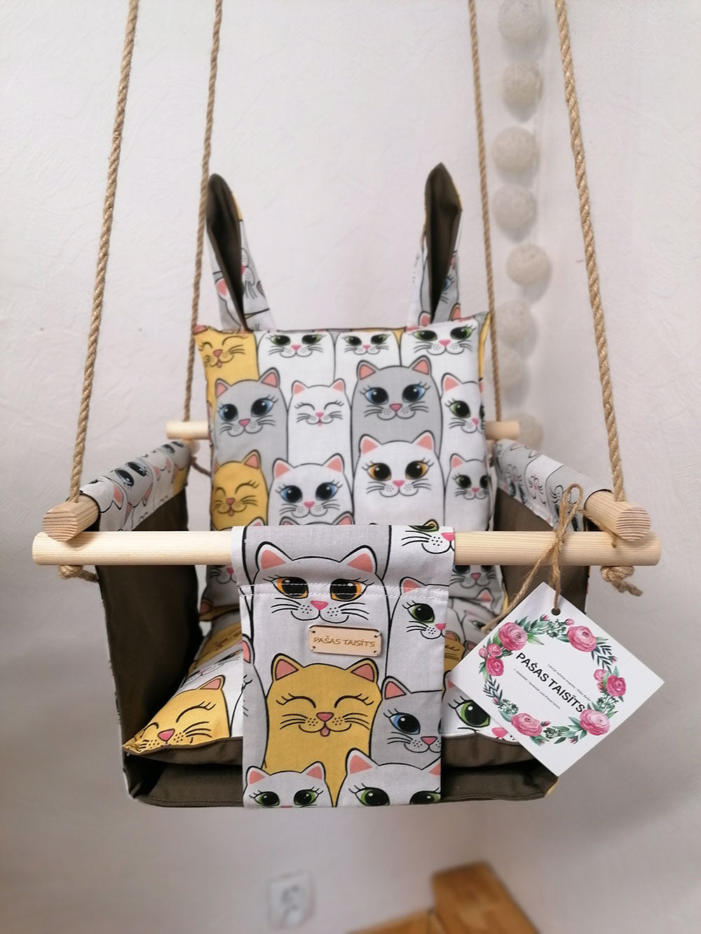 Lietošanas instrukcija – Paredzētas līdz 25 kg. Neatstāt bērnu vienu, nepieskatītu šūpolēs! Pārliecinieties, ka stiprinājums ir drošs un ir aizskrūvēta karabīne. Mazgāt 30grādu temperatrā, iesakām ar rokām. Var lietot iekštelpās un ārā. Neatstāt ārā lietus laikā! Neatstāt saulē, lai neizbalē krāsas.