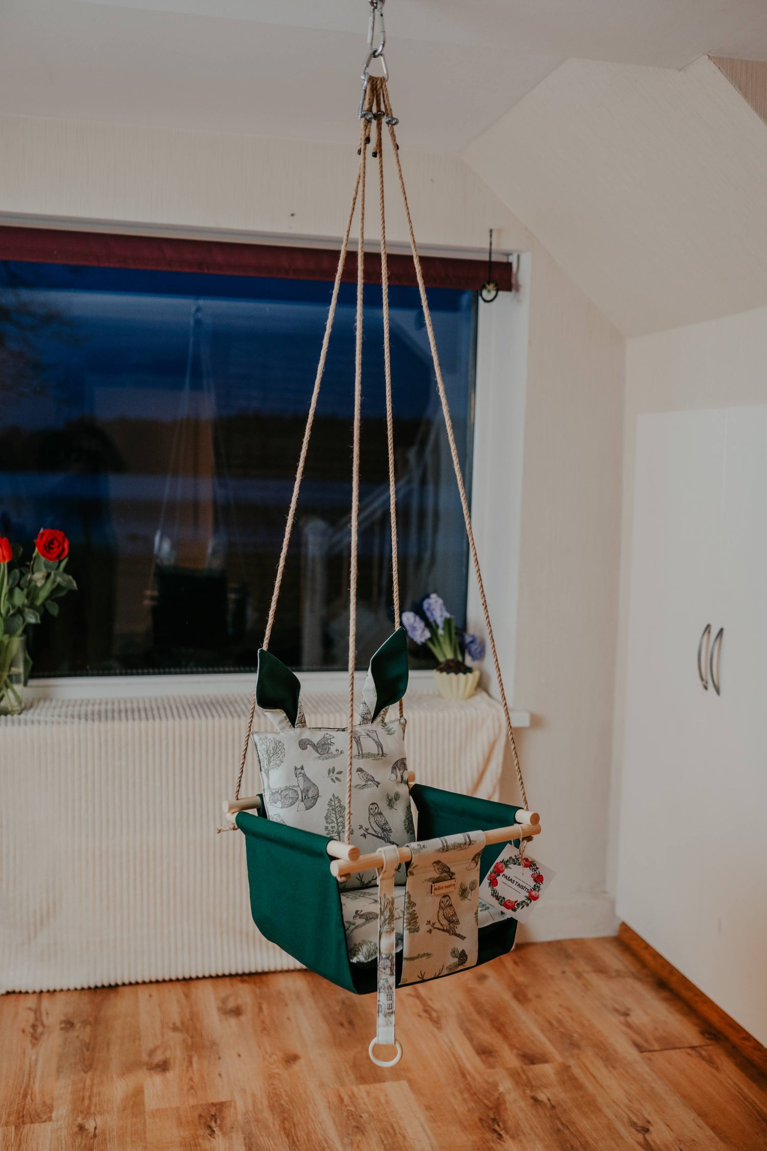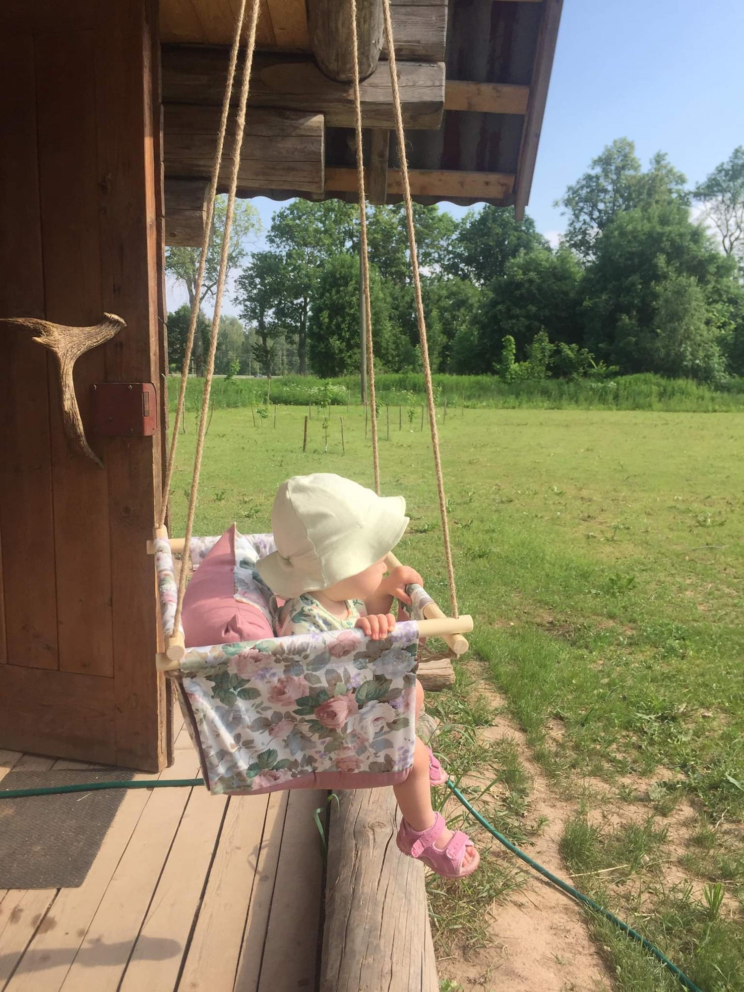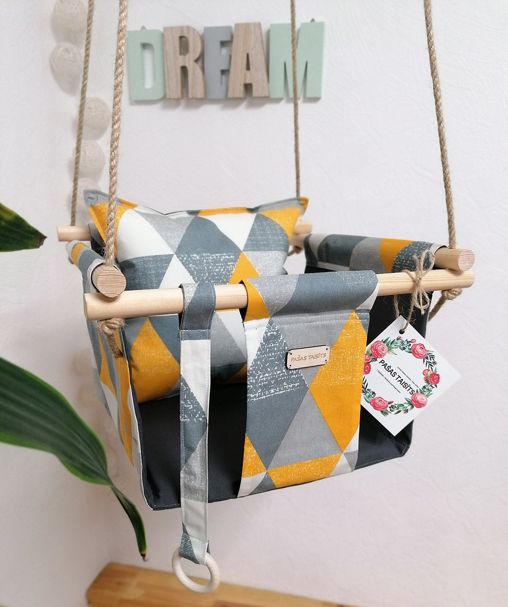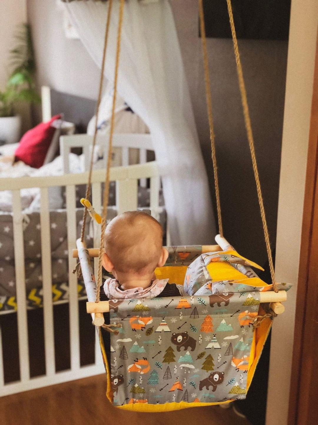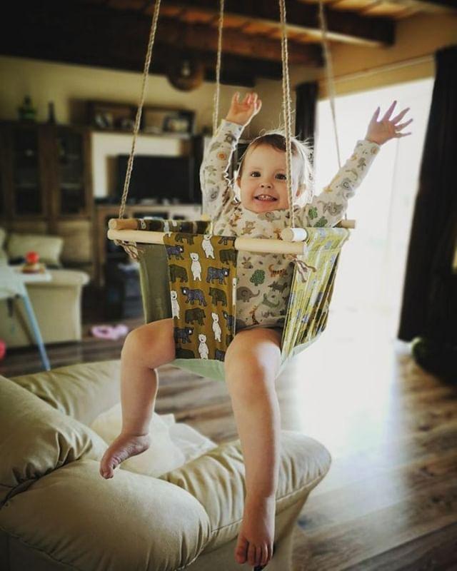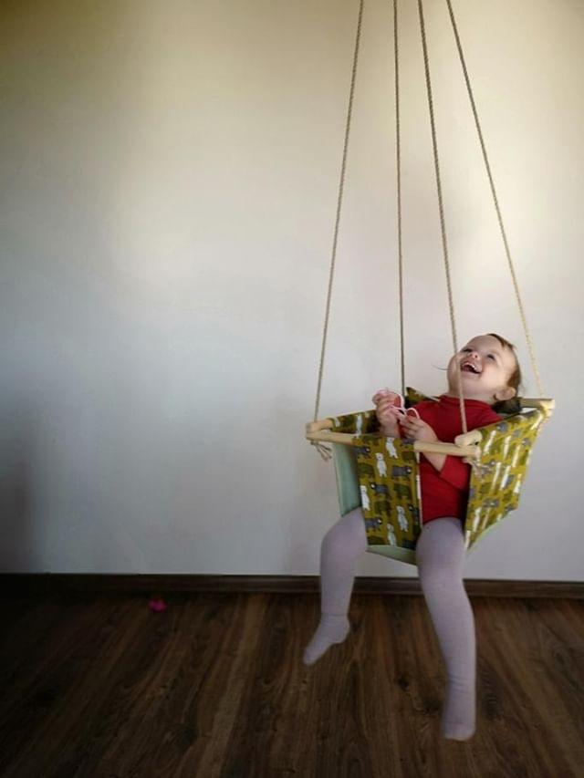 Kur šūpoles var kārt? – istabā, koka sijā, durvju ailē, uz terases, balkona, ārā kokā un, protams, var ņemt līdz ceļojumos, jo tās ir tik kompaktas un neaizņems daudz vietas, bet bērniņš būs laimīgs!