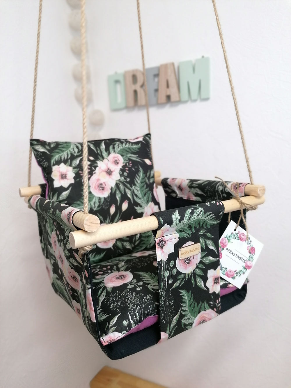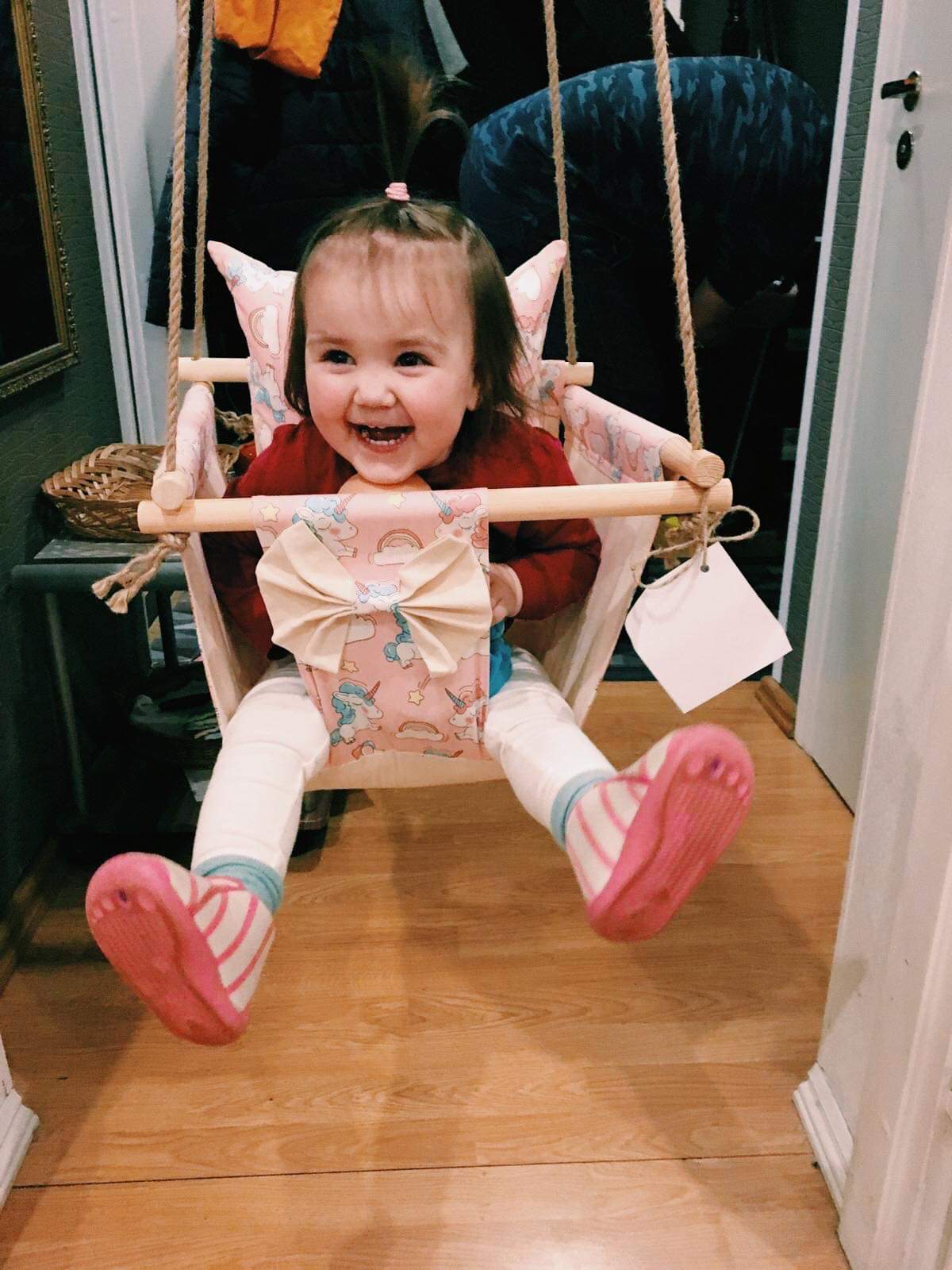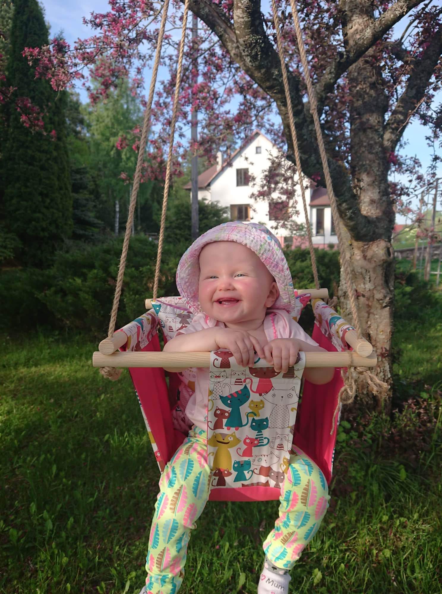 Bērnu šūpoles paredzētas, kad bērniņš patstāvīgi sāk sēdēt. Derēs līdz apmēram 25kg. Lieliska dāvana bērnam, lai dzirdētu smieklus mājā un pagalmā!