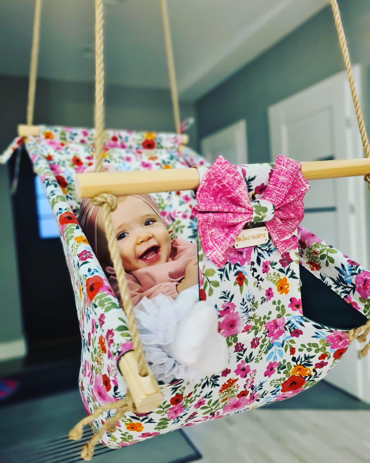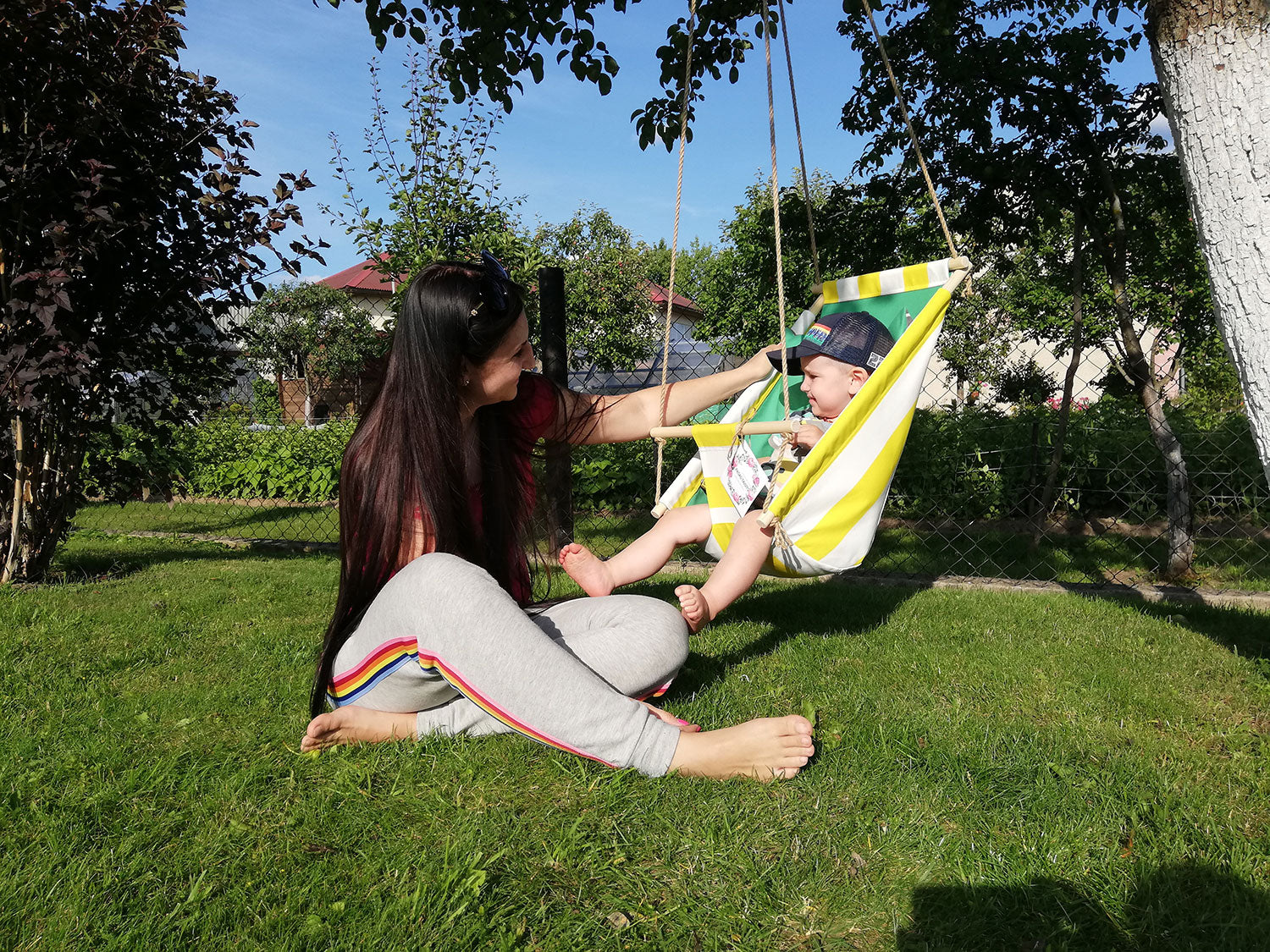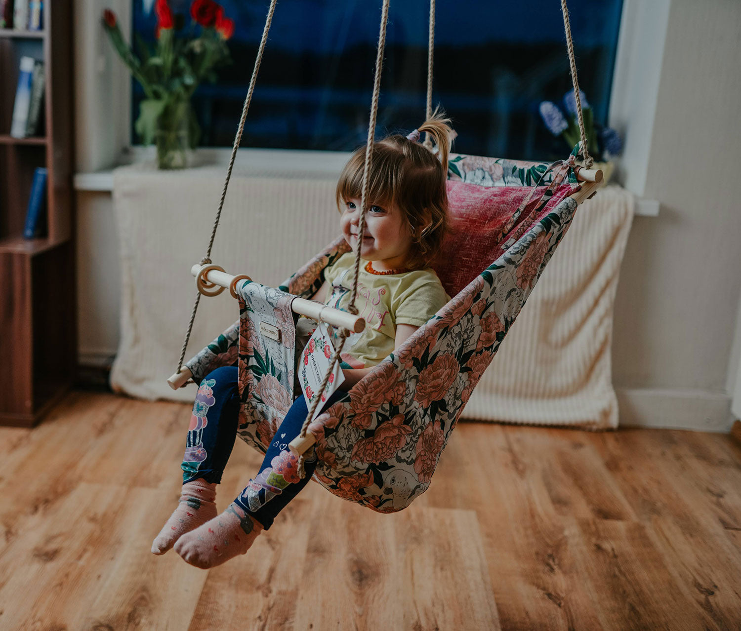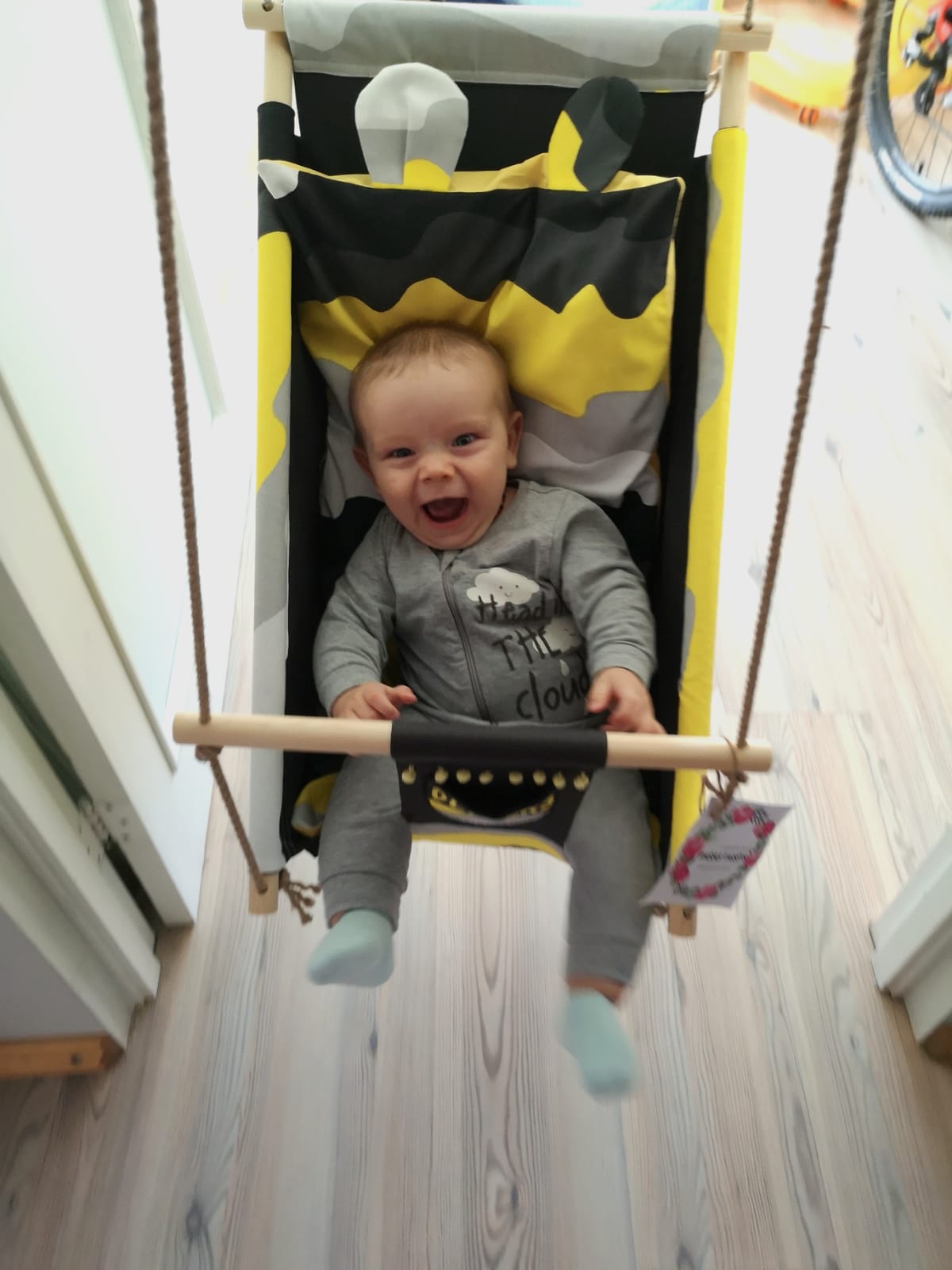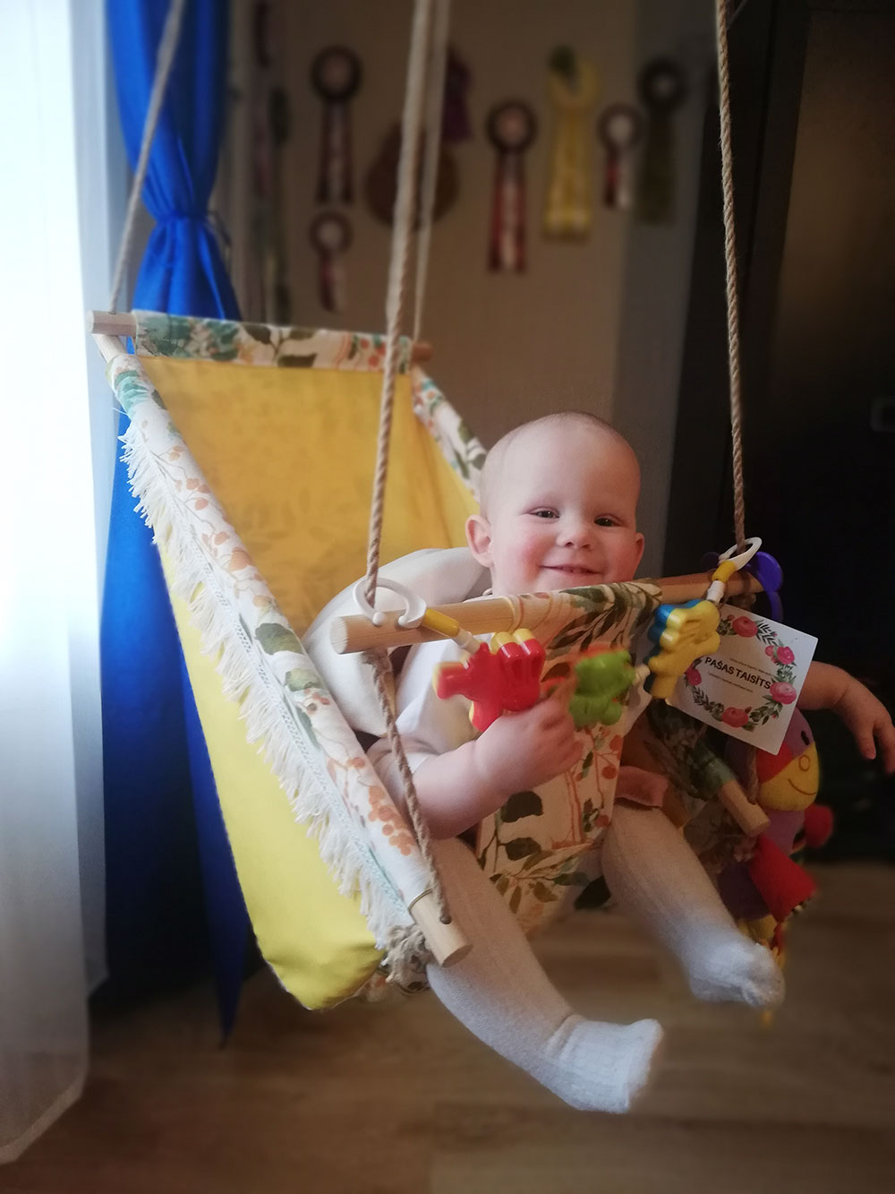 Kur šūpuļkrēslu var kārt? – istabā, koka sijā, durvju ailē, uz terases, balkona, ārā kokā un, protams, var ņemt līdz ceļojumos, jo tas ir tik kompakts un neaizņems daudz vietas, bet bērniņš būs laimīgs!