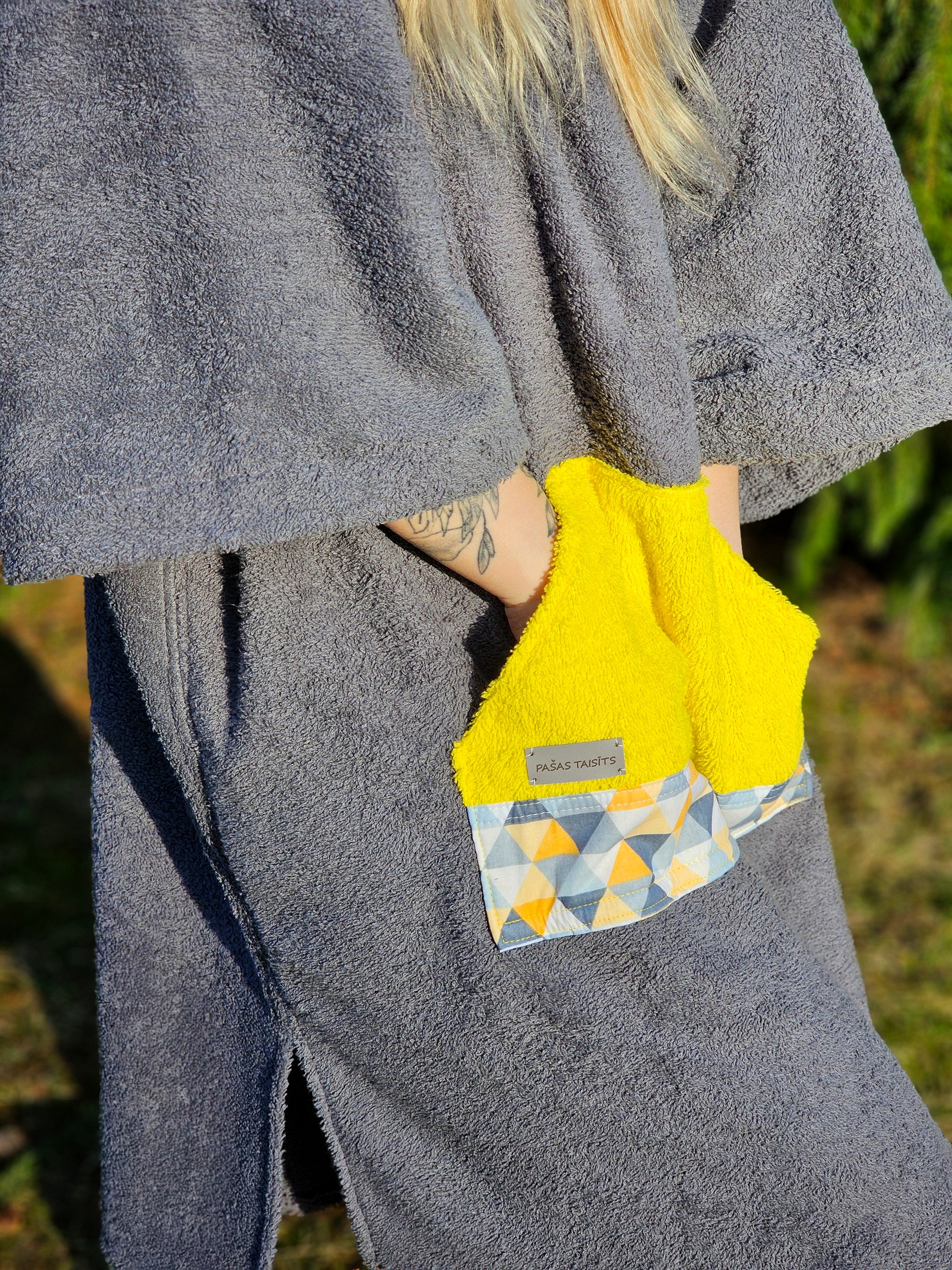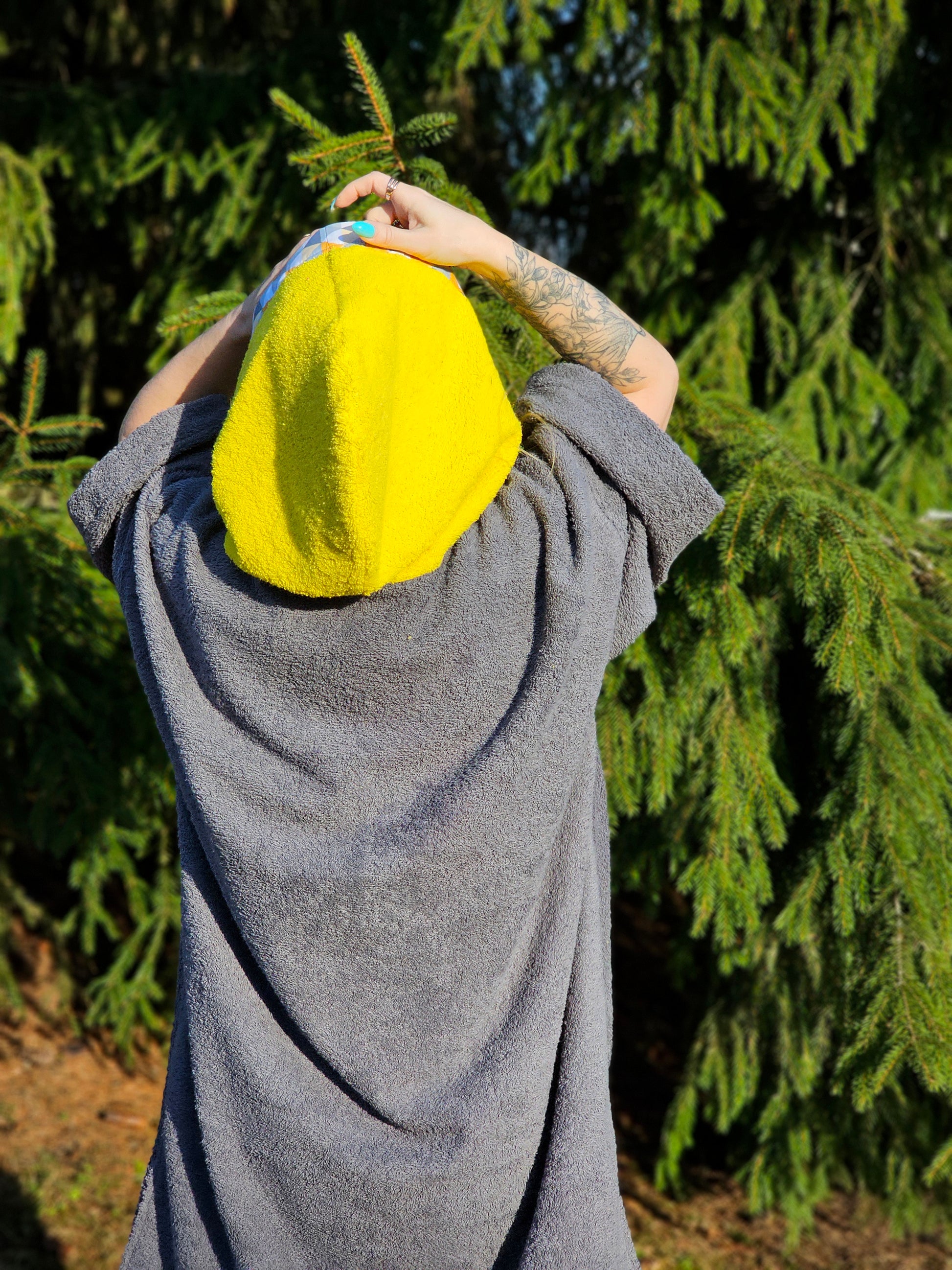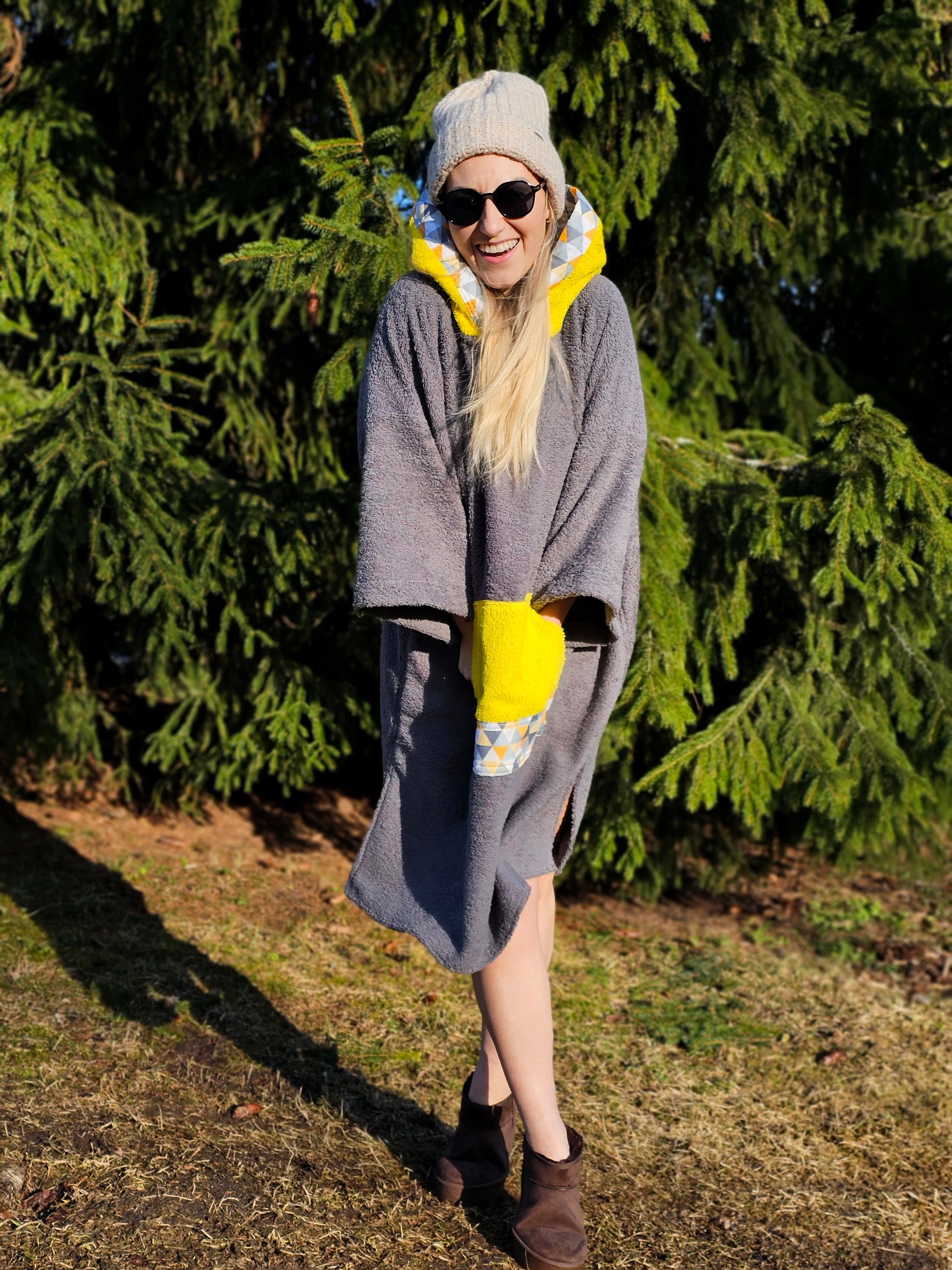 Pončo tapa, jo mēs paši esam lieli pirts un kubla cienītāji un baudītāji. Īpaši, kad pēc pirts jāskrien uz dīķi atveldzēties un pēc tam gribās pasēdēt ārā, lai izbaudītu šo burvīgo sajūtu. Halātiņā ir silti, vējš netiek klāt un tas lieliski uzsūc mitrumu. Noteikti derēs arī tiem, kuri ir iecienījuši doties aukstajās peldēs vai “roņot”.