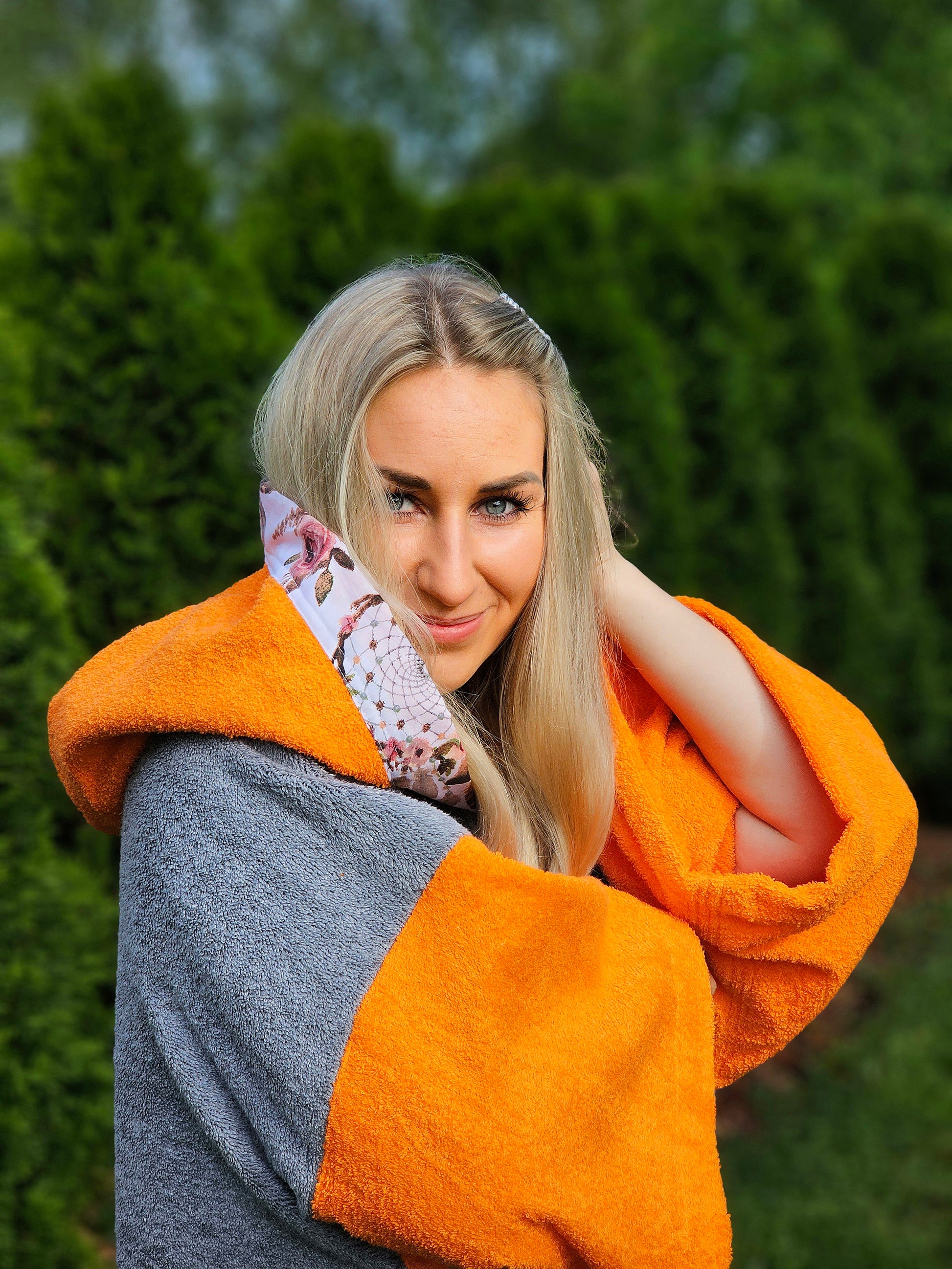 Frotē halāts ar lielu, ērtu kapuci, vienu lielu vai divām kabatām priekšpusē noderēs lietošanai pirtī, mājās, spa, kublā. Lieliska dāvana kā pirts baudītājiem, tā ūdenssporta cienītājiem. 100% kokvilnas audums. Labi uzsūc mitrumu. Iespējams izvēlēties sev tīkamus toņus, ar vai bez rāvējslēdzēja, slīpās vai taisnās kabatas. Varam iešūt vārdu, tekstu vai kādu zīmējumu. Gan lieliem, gan maziem vai burvīgs ģimenes komplekts ar saskaņotām detaļām. Mazgāt veļas mašīnā 40 °C temperatūrā.