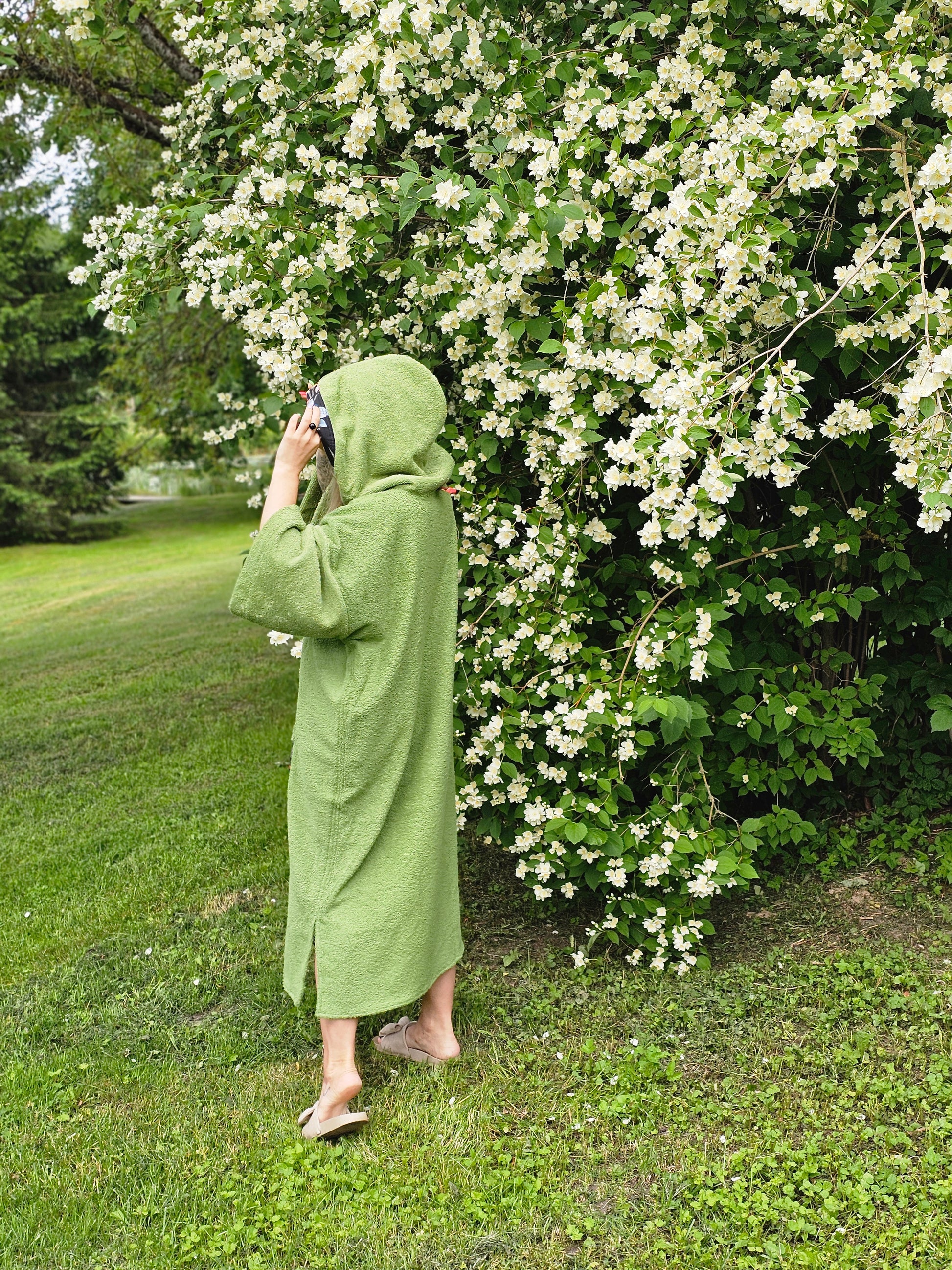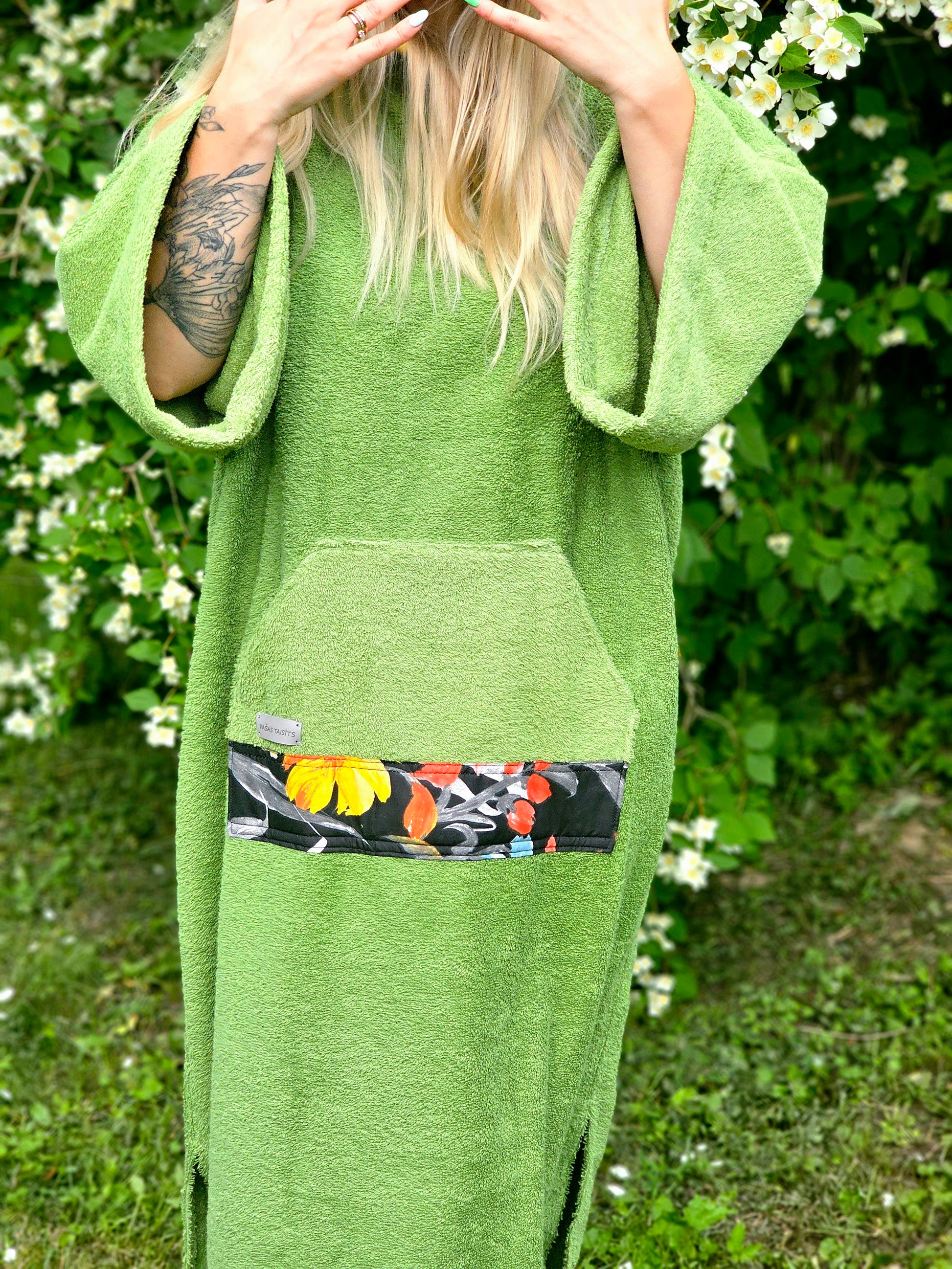 Pončo tapa, jo mēs paši esam lieli pirts un kubla cienītāji un baudītāji. Īpaši, kad pēc pirts jāskrien uz dīķi atveldzēties un pēc tam gribās pasēdēt ārā, lai izbaudītu šo burvīgo sajūtu. Halātiņā ir silti, vējš netiek klāt un tas lieliski uzsūc mitrumu. Noteikti derēs arī tiem, kuri ir iecienījuši doties aukstajās peldēs vai “roņot”.