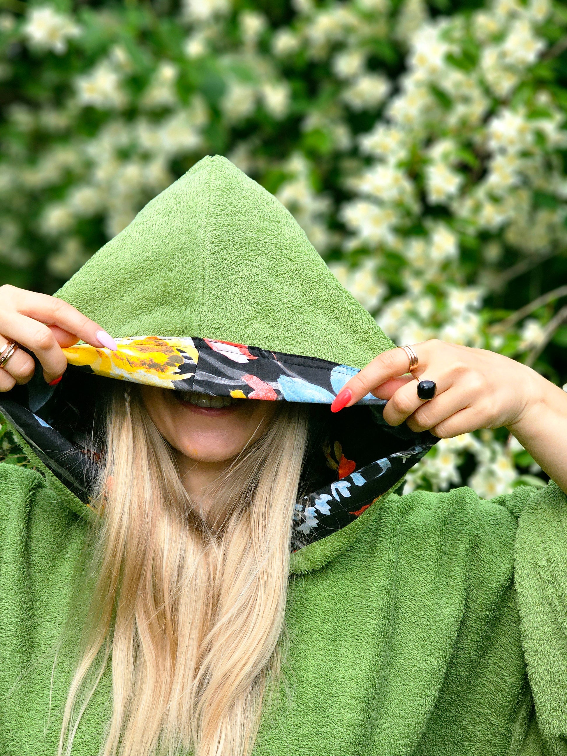 Māsa krustdēliņam vēlējās frotē pončo, lai mazais var jūrā pēc peldēšanās uzvilkt pončo un turpināt spēlēties ērti smiltiņās un, protams, lai ādu pasargātu no spēcīgās saules. Šobrīd daudzi izvēlas pončo, jo pēc peldēm visos gadalaikos ir ļoti ērti pārģērbties vai vienkārši sēsties auto ar pončo mugurā un braukt mājā.