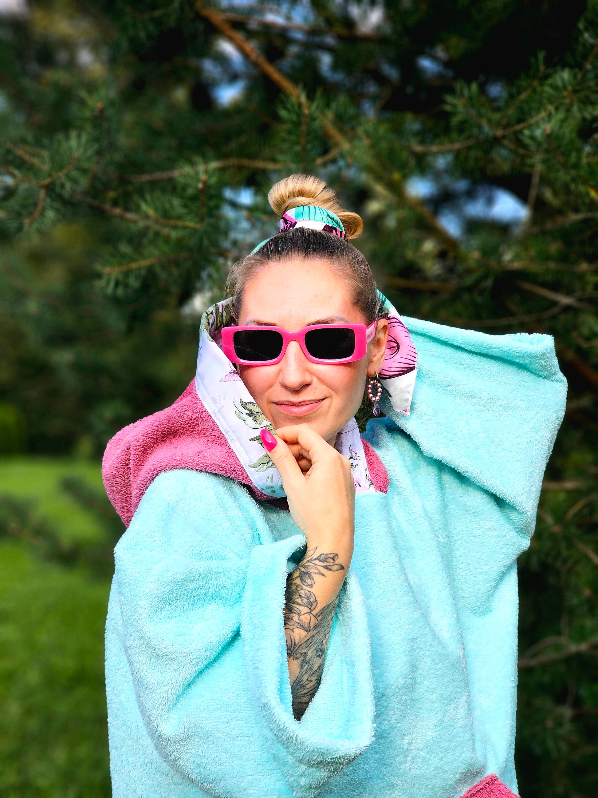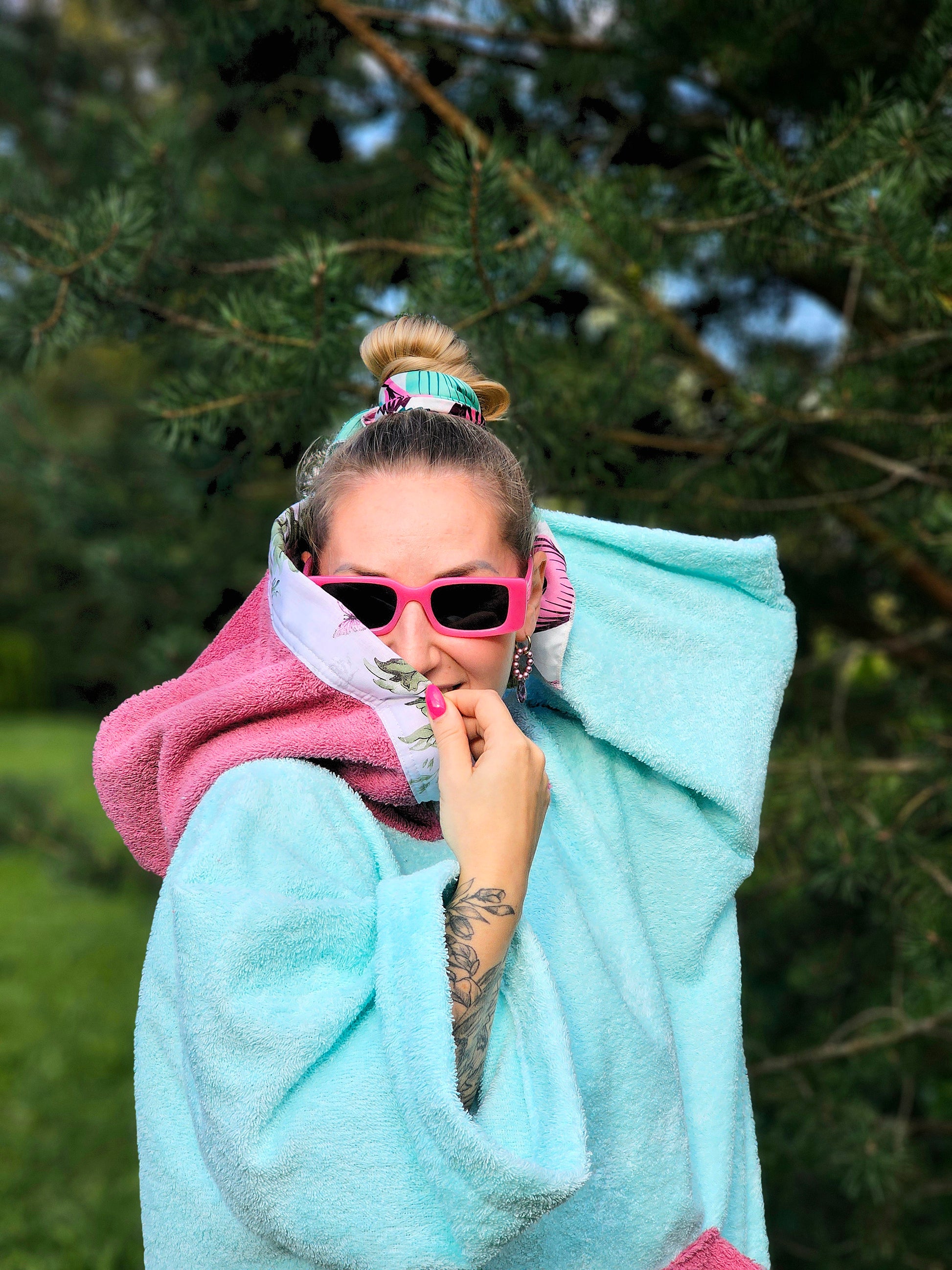 Māsa krustdēliņam vēlējās frotē pončo, lai mazais var jūrā pēc peldēšanās uzvilkt pončo un turpināt spēlēties ērti smiltiņās un, protams, lai ādu pasargātu no spēcīgās saules. Šobrīd daudzi izvēlas pončo, jo pēc peldēm visos gadalaikos ir ļoti ērti pārģērbties vai vienkārši sēsties auto ar pončo mugurā un braukt mājā.