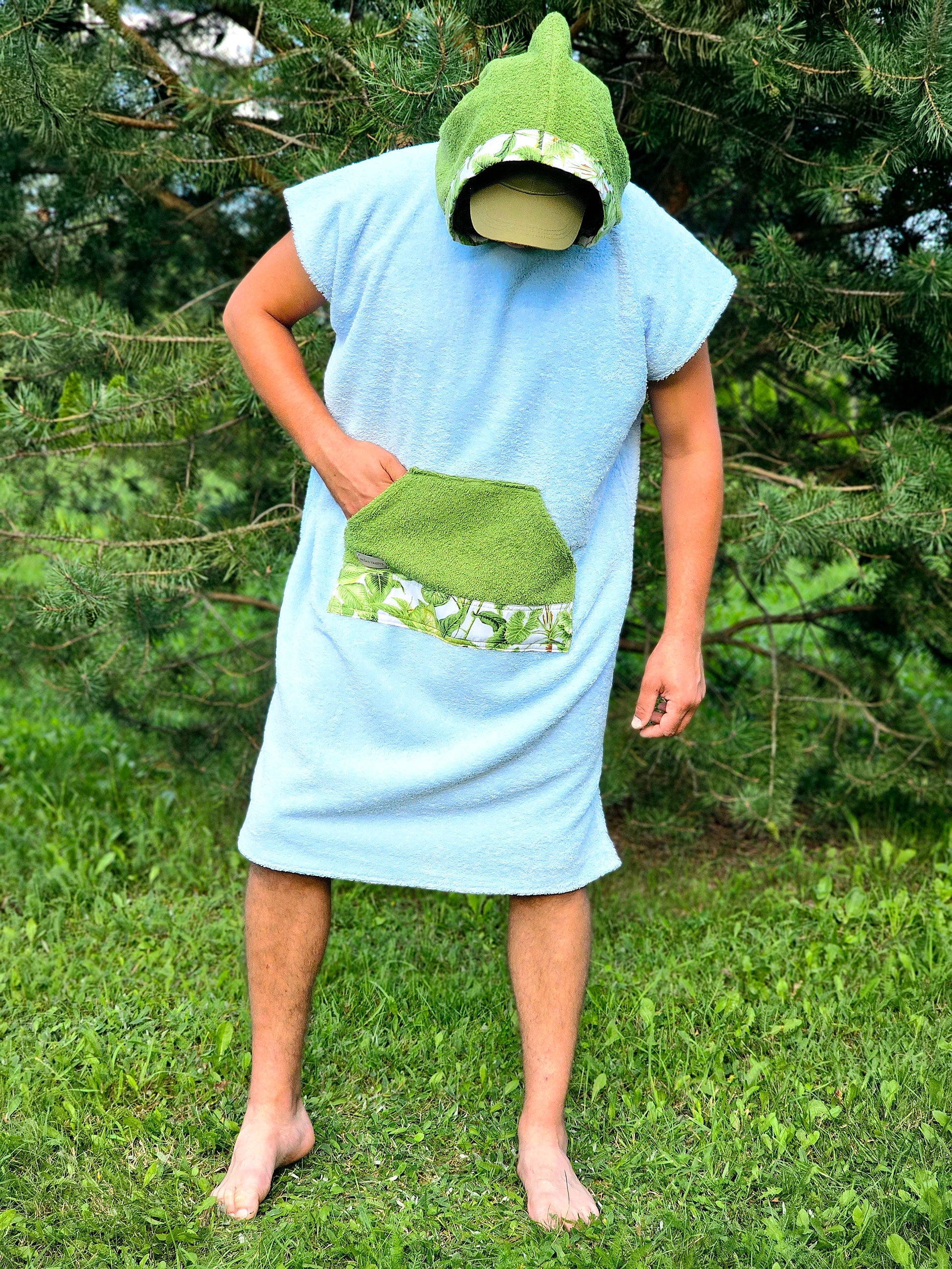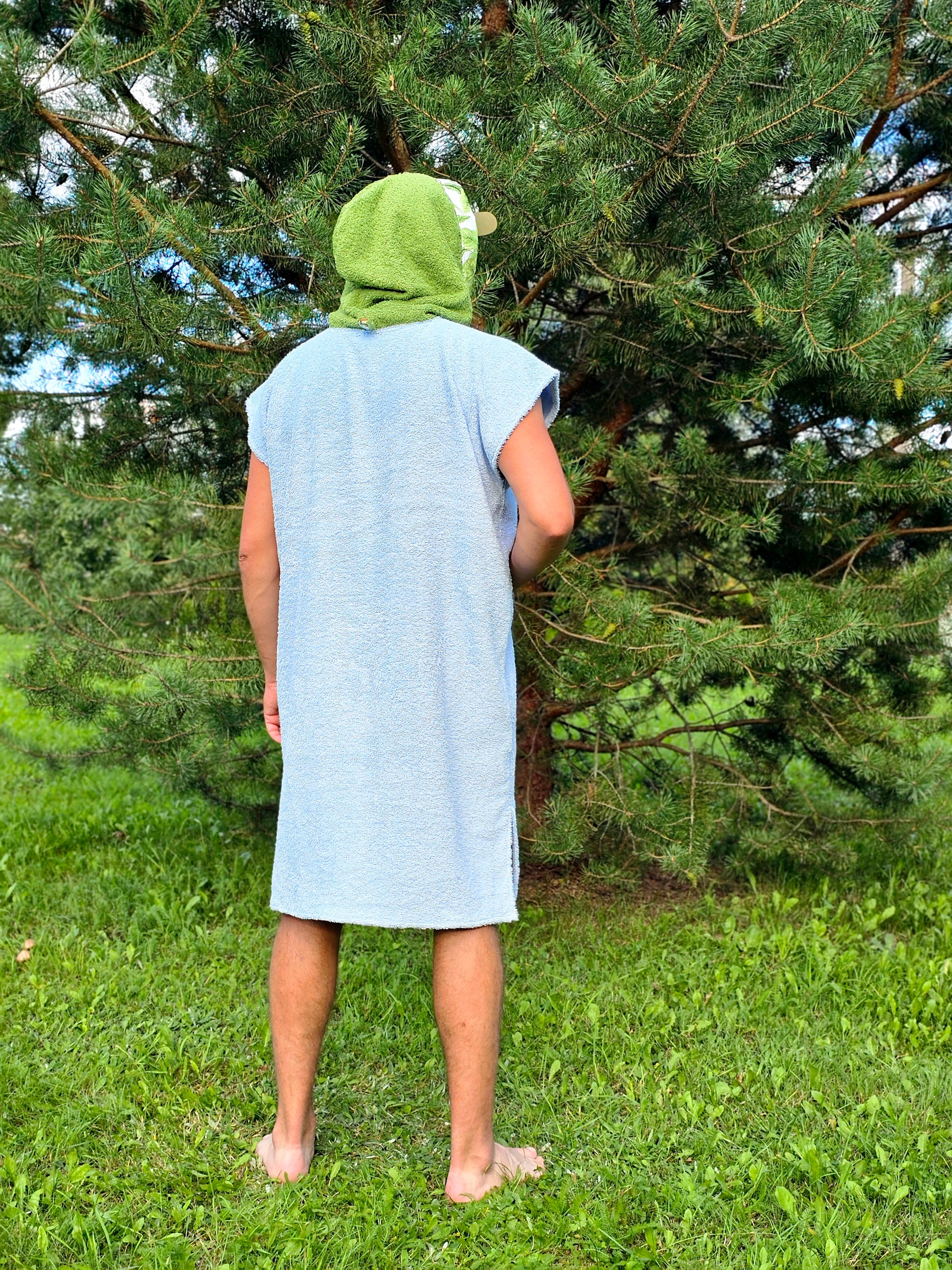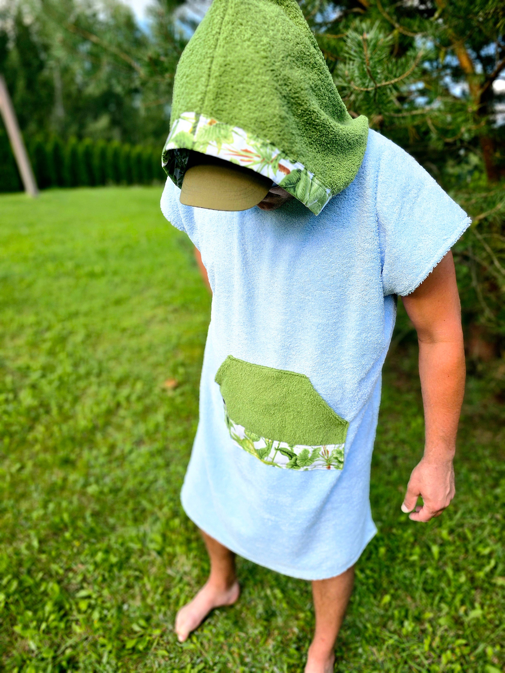 Māsa krustdēliņam vēlējās frotē pončo, lai mazais var jūrā pēc peldēšanās uzvilkt pončo un turpināt spēlēties ērti smiltiņās un, protams, lai ādu pasargātu no spēcīgās saules. Šobrīd daudzi izvēlas pončo, jo pēc peldēm visos gadalaikos ir ļoti ērti pārģērbties vai vienkārši sēsties auto ar pončo mugurā un braukt mājā.