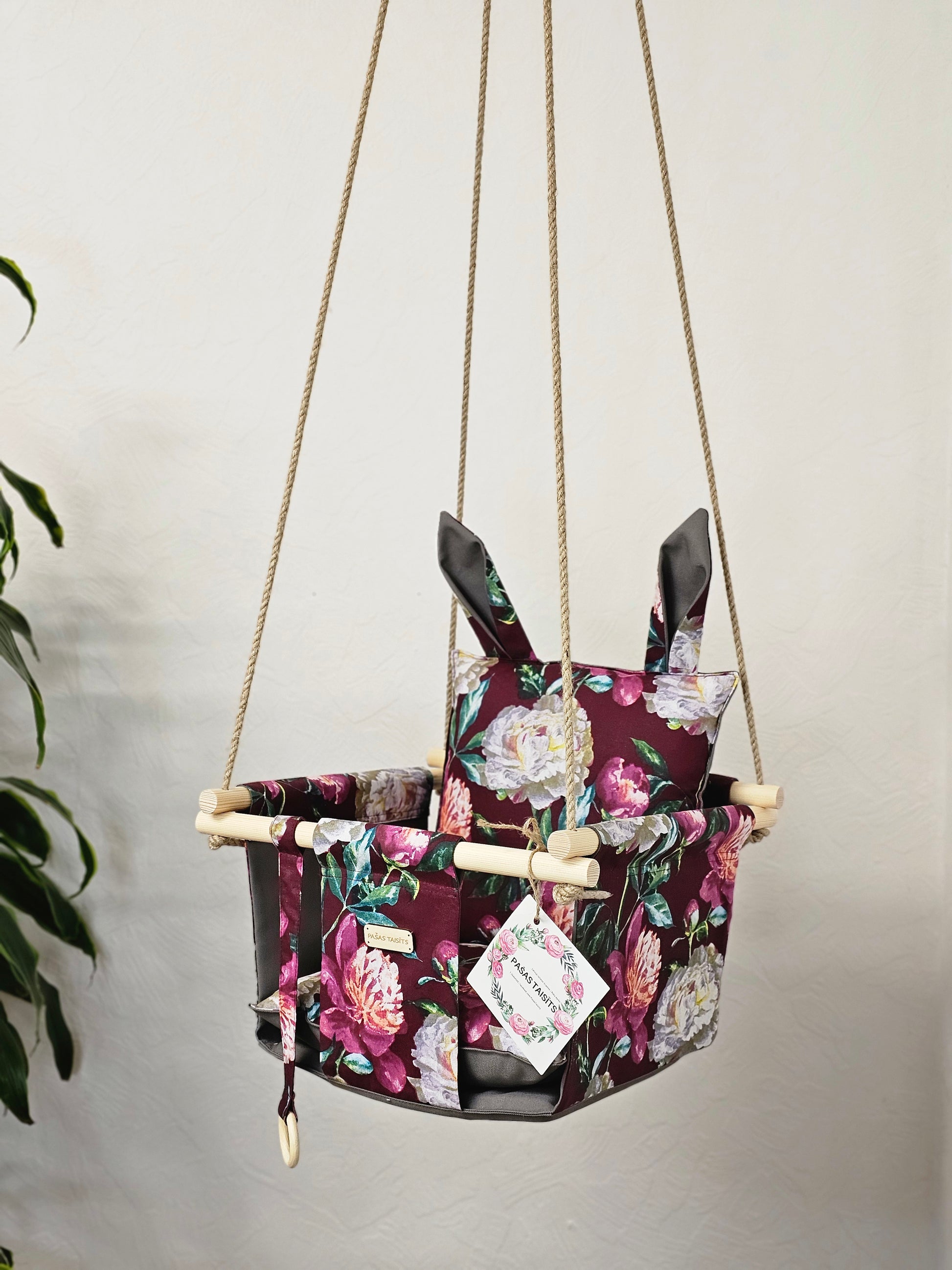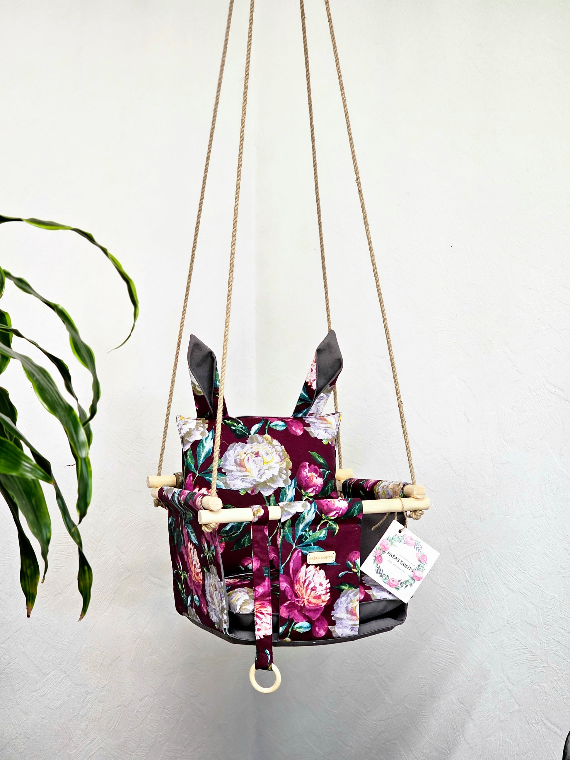 Kur šūpoles var kārt? – istabā, koka sijā, durvju ailē, uz terases, balkona, ārā kokā un, protams, var ņemt līdz ceļojumos, jo tās ir tik kompaktas un neaizņems daudz vietas, bet bērniņš būs laimīgs!