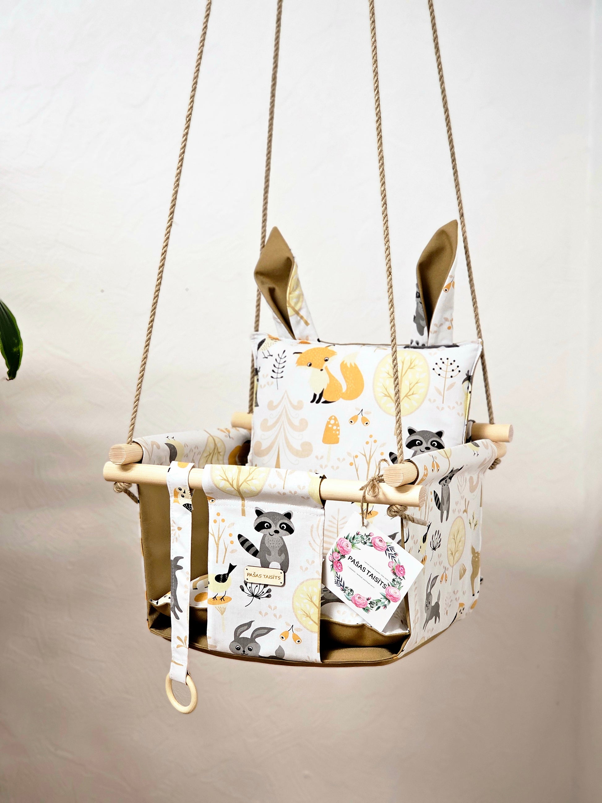 Bērnu šūpoles paredzētas no 6/7mēneši, kad bērniņš patstāvīgi sāk sēdēt. Derēs līdz apmēram 25kg. Lieliska dāvana bērnam, lai dzirdētu smieklus mājā un pagalmā!
