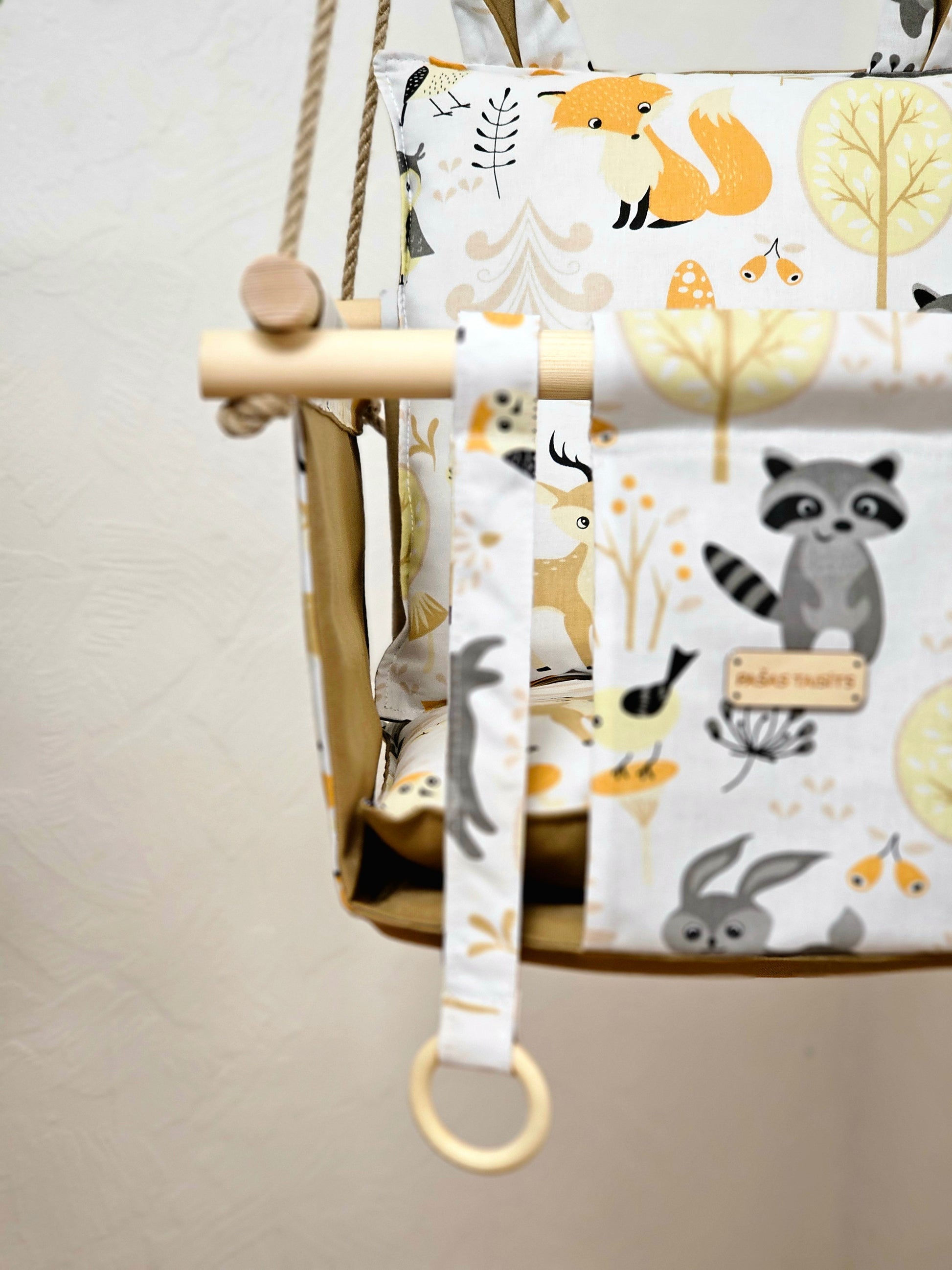 - Mazgāt 30 grādos, ieteicams ar rokām. Kad šūpoles netiek lietotas, neatstājiet tiešos saules staros vai lietū/mitrumā. Pēc šūpošanās ārā, vienmēr ienesiet tās iekšā!